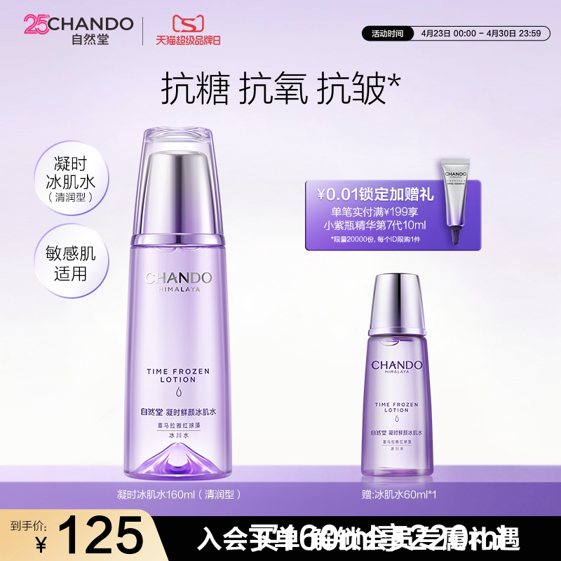 自然堂凝时鲜颜清润型冰肌水保湿补水抗皱紧致化妆水爽肤敏肌可用