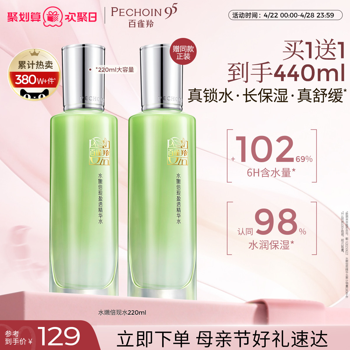 百雀羚水嫩倍现清润美肤水补水保湿舒缓爽肤水化妆水护肤品化妆品