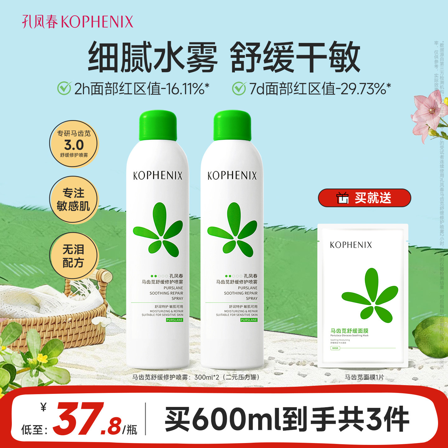 孔凤春马齿苋调养水补水喷雾保湿水爽肤水湿敷舒缓屏障化妆水护肤