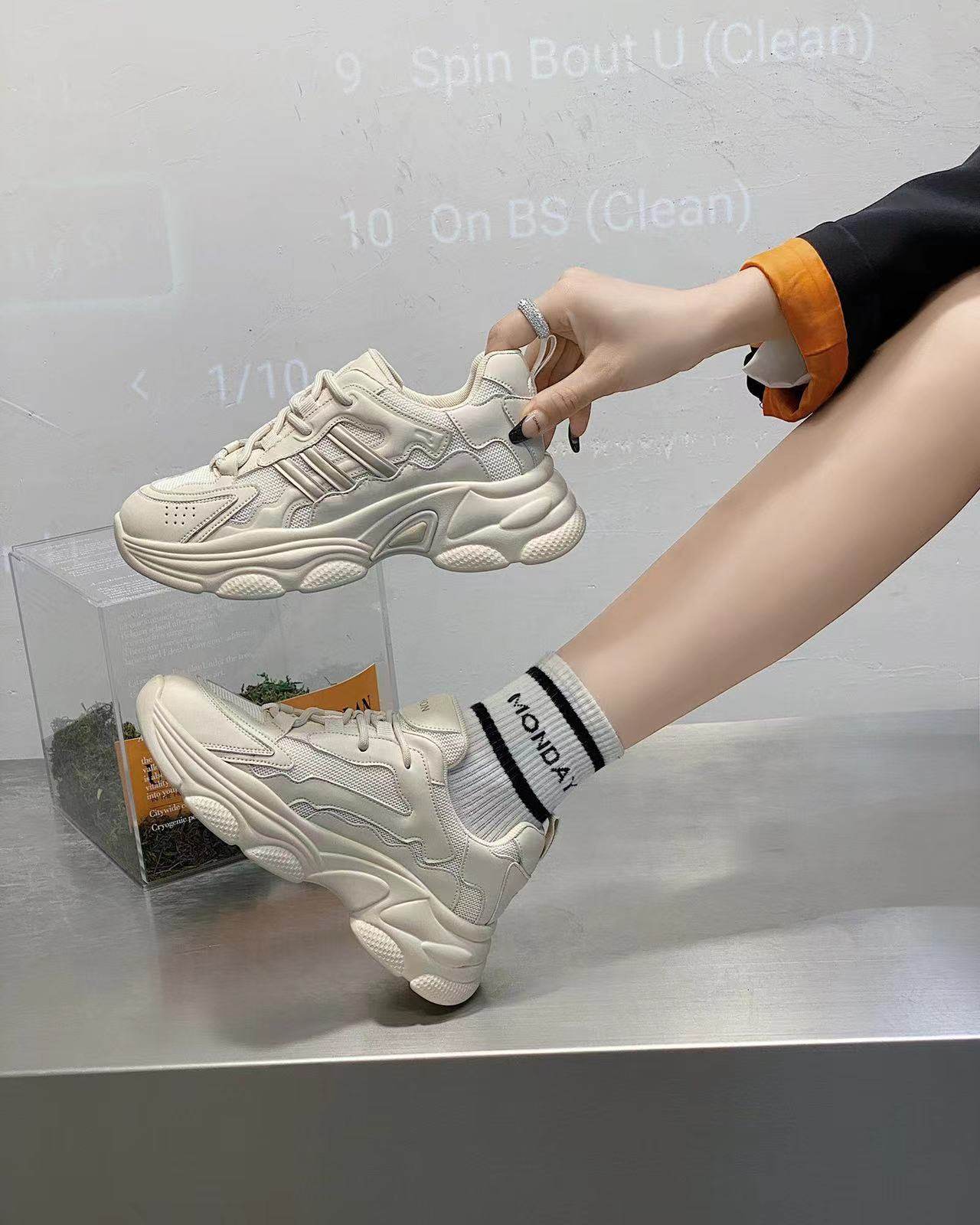 2021新款春秋女鞋网面运动鞋休闲网红鞋女果冻底网鞋内增高老爹鞋