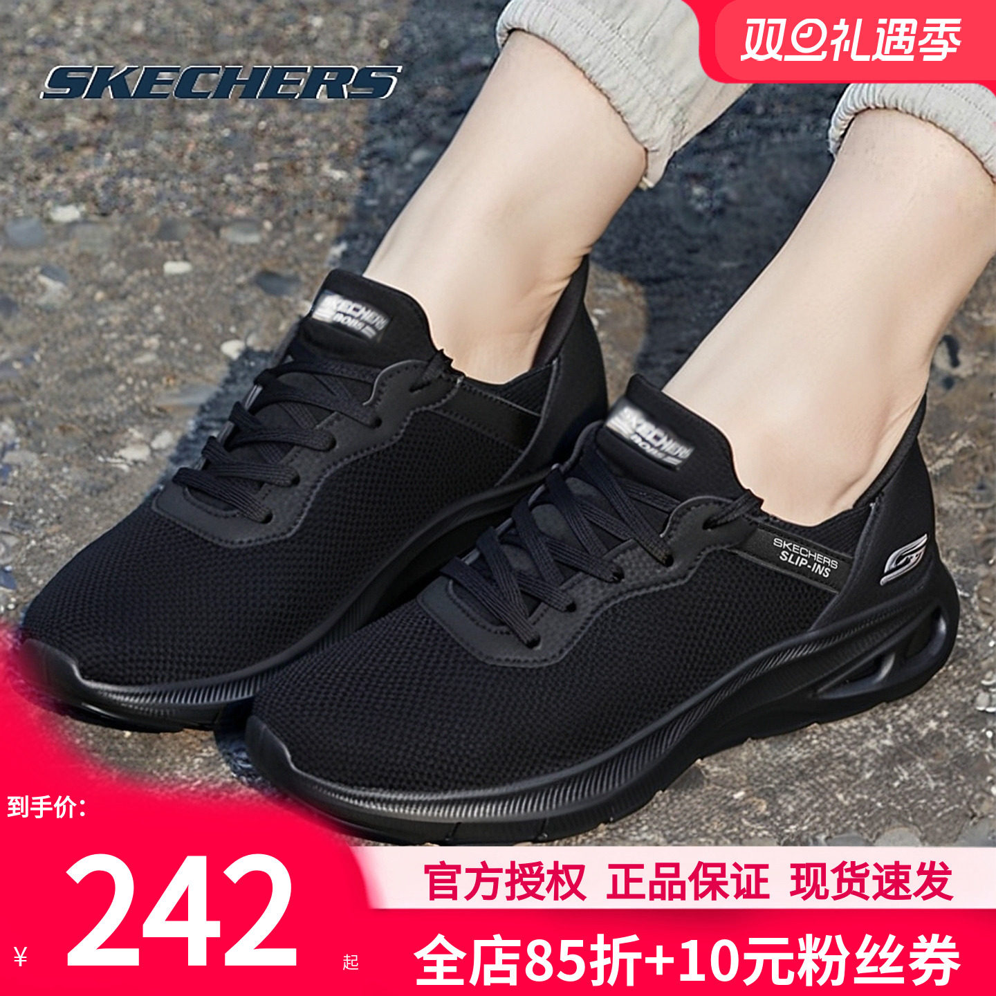 斯凯奇女鞋网面运动鞋秋冬新款一脚蹬穿脱黑色跑步鞋官方休闲鞋子