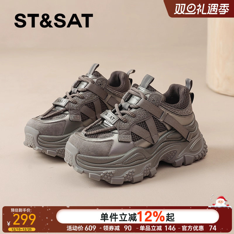 星期六女鞋网面运动鞋女款2025秋季新款镂空透气德训鞋厚底休闲鞋