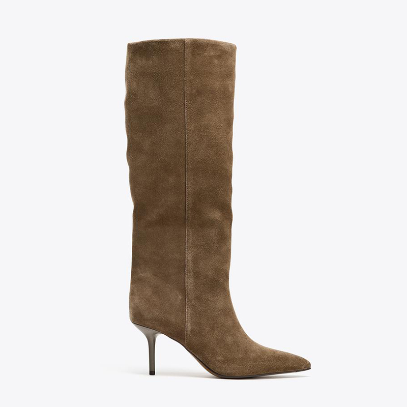 ZA2025秋冬新款尖头高跟骑士靴欧美细跟高筒裤管靴不过膝长筒靴女