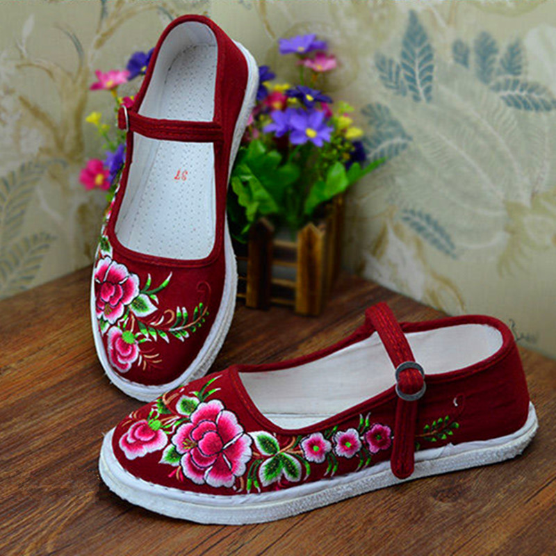 老北京布鞋女单鞋春夏平底平跟妈妈鞋软底防滑绣花鞋民族风跳舞鞋