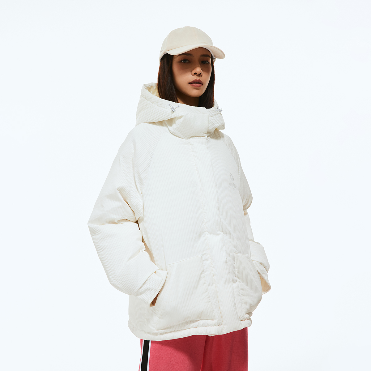 美特斯邦威羽绒服女秋冬时尚拼色中长款潮牌运动连帽宽松羽绒外Q