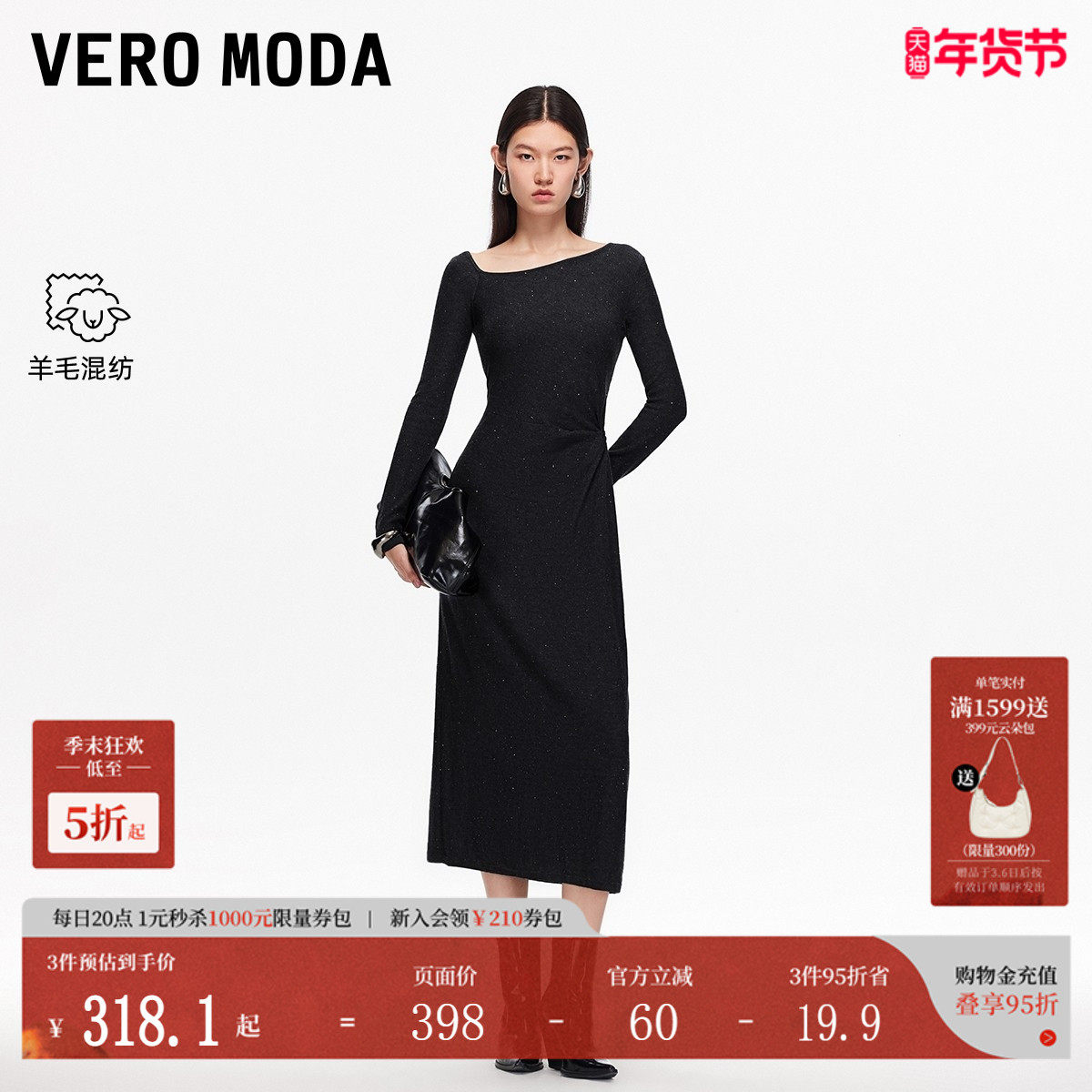 Vero Moda连衣裙2025秋季新款含绵羊毛亮片钉珠不规则领口针织裙