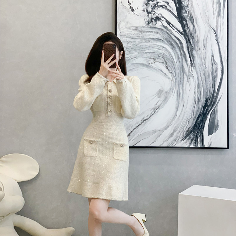 超好看法式气质名媛钉珠针织连衣裙女秋装新款气质女神范甜美长裙