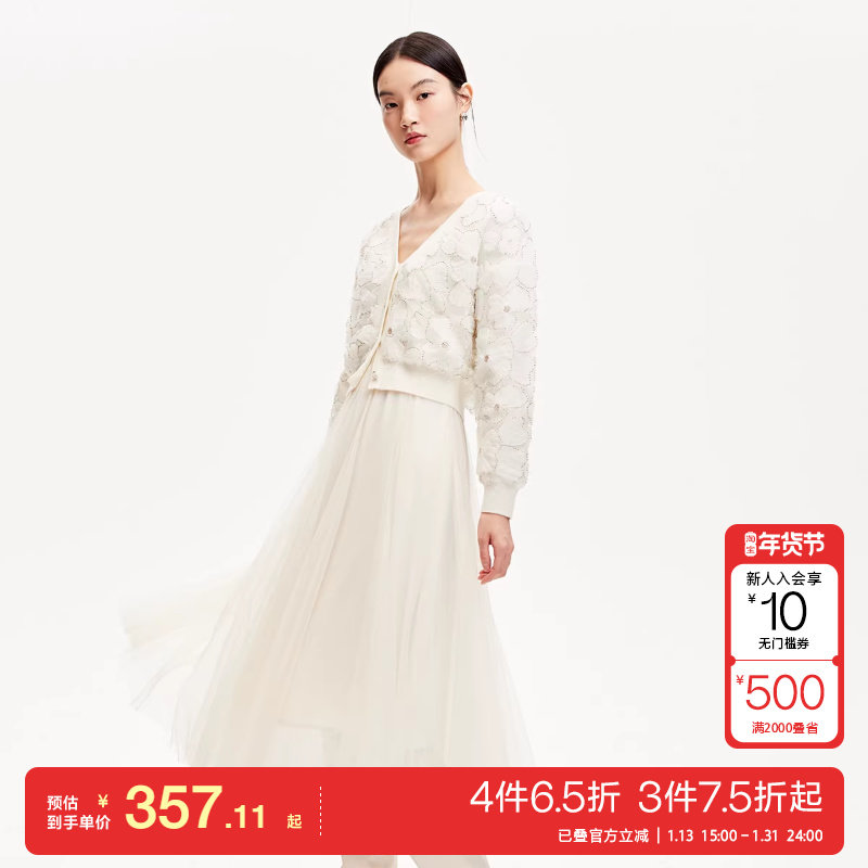 璀璨星河鎏霞系列小香风重工钉珠圆领针织开衫外套上衣修身连衣裙