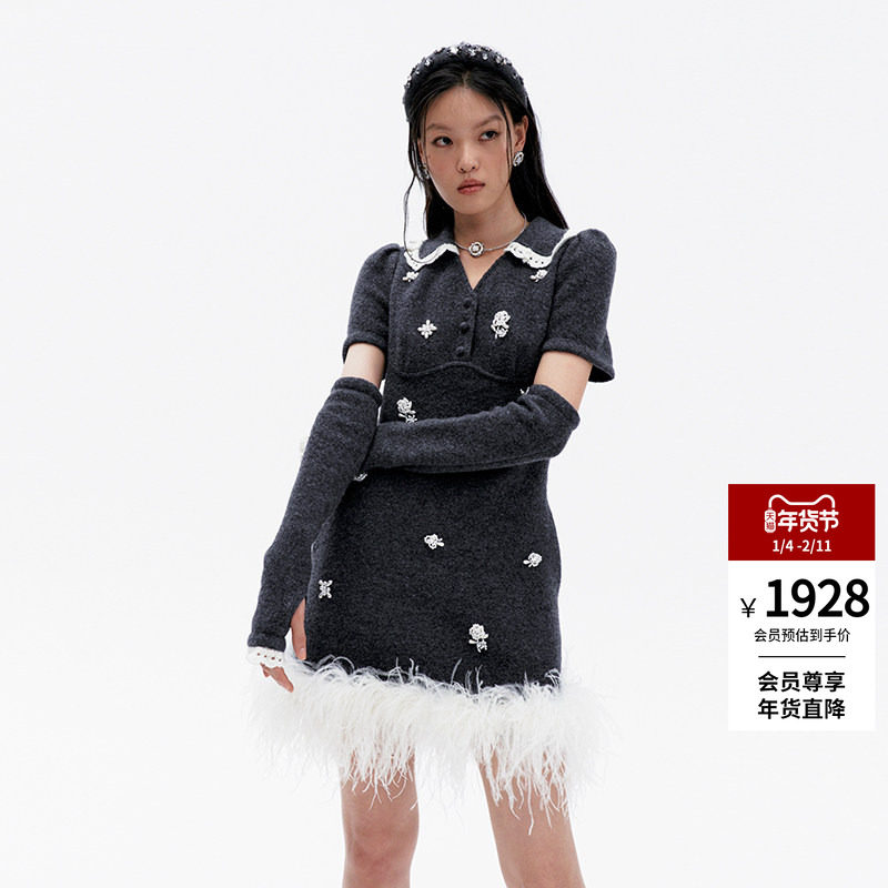 【年货专题】WEANCHEAM/未未姆 2025冬季miu系钉珠针织连衣裙