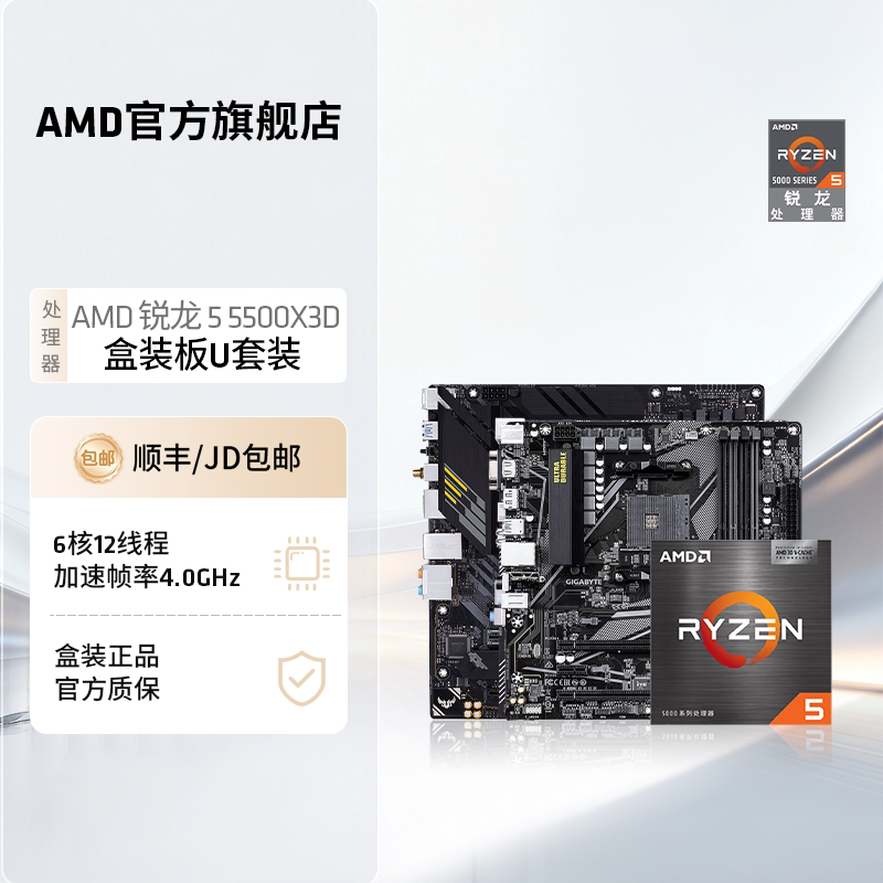 AMD锐龙R5 5500X3D盒装CPU搭华硕技嘉主板台式机电脑板U套装