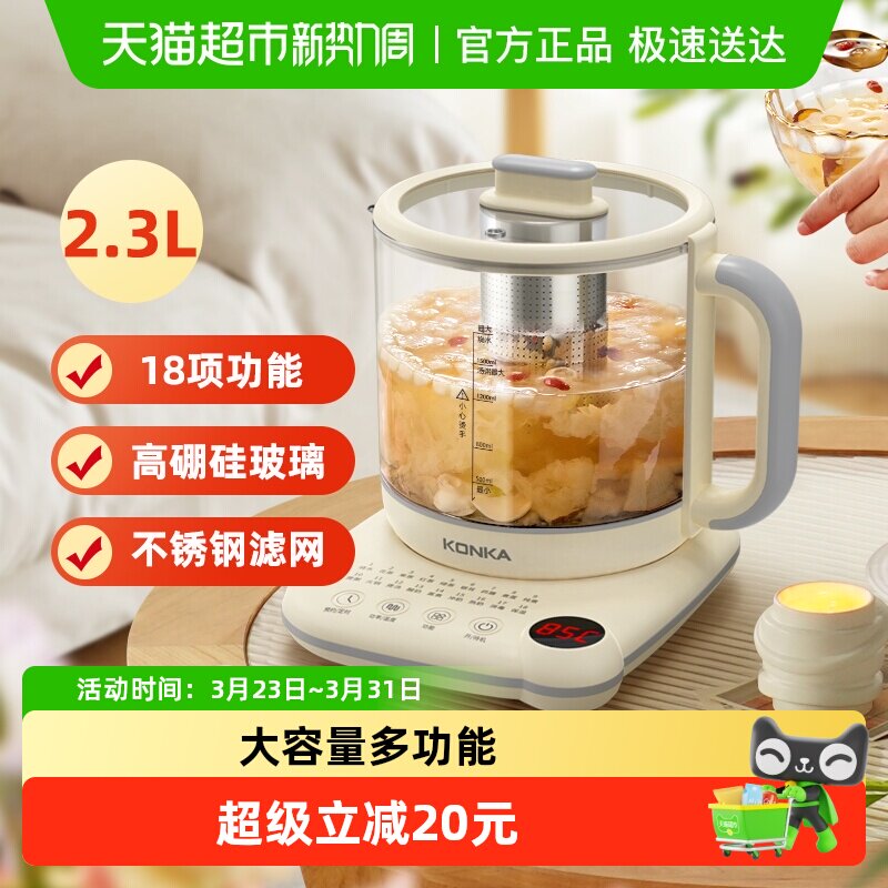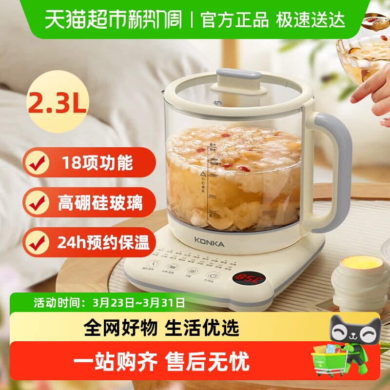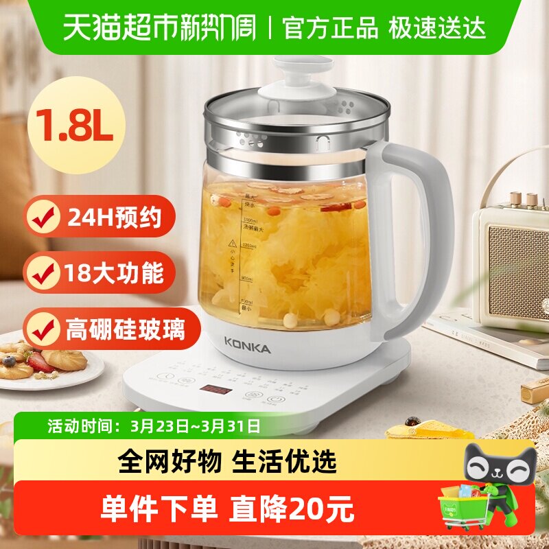 康佳养生壶电水壶花茶壶煮茶器水果茶银耳羹玻璃花茶烧水壶1.8L
