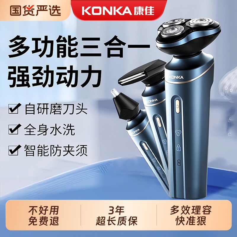 KONKA康佳剃须刀男士电动三合一多功能刮胡刀官方正品智能胡须刀