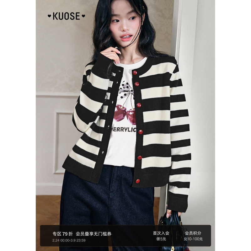 阔色条纹毛衣开衫外套2025秋冬季新款女装长袖针织衫宽松黑色上衣