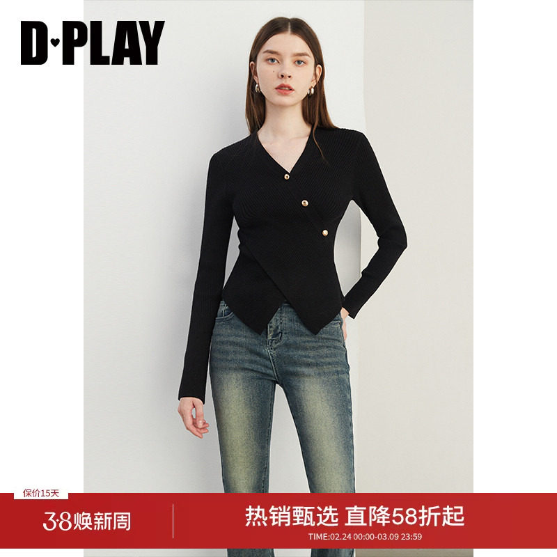 DPLAY2025秋季新款气质黑色毛衣女开衫内搭打底衫针织衫上衣