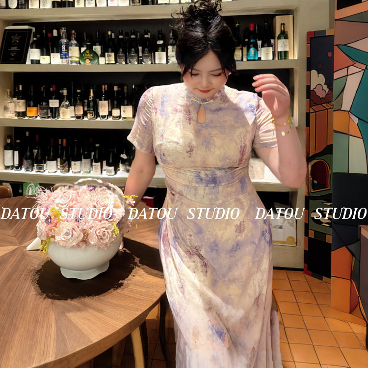 哒头.Studio【紫香玉】【超美晕染】微胖大码显瘦改良旗袍连衣裙
