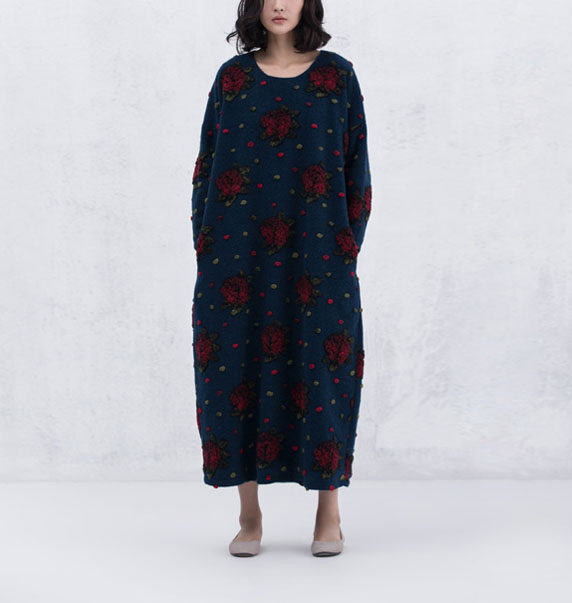 原创超美立体提花袍子连衣裙秋冬文艺显瘦羊毛呢加厚保暖宽松长袍