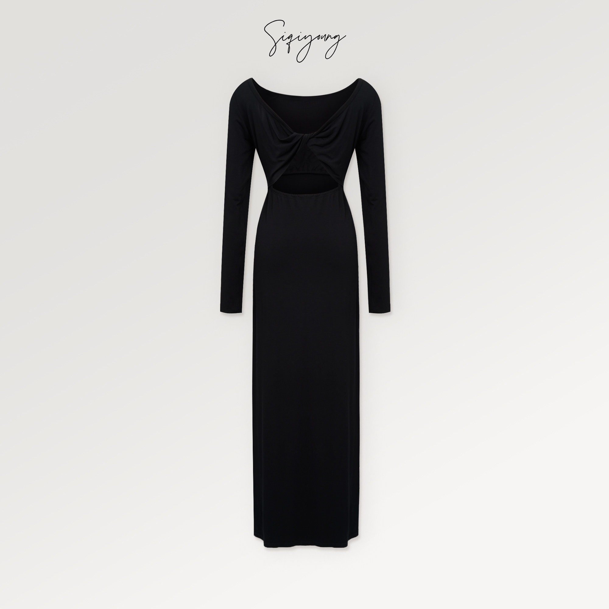 SIQIYOUNG 西西里-露背连衣裙 高弹力小黑裙长超美后背低调华丽感