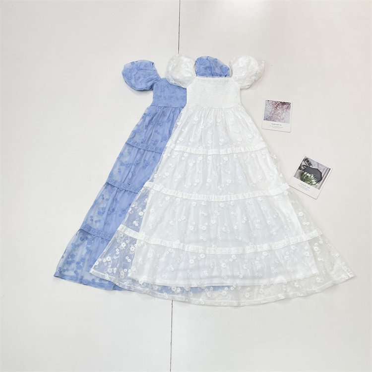 法式绣花裙~外单纯元26夏新超美泡泡袖袖公主裙仙气款网纱连衣裙