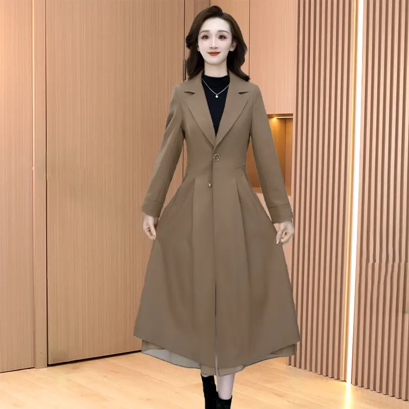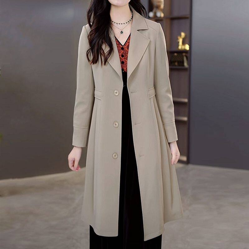 - 西装领风衣女长款
