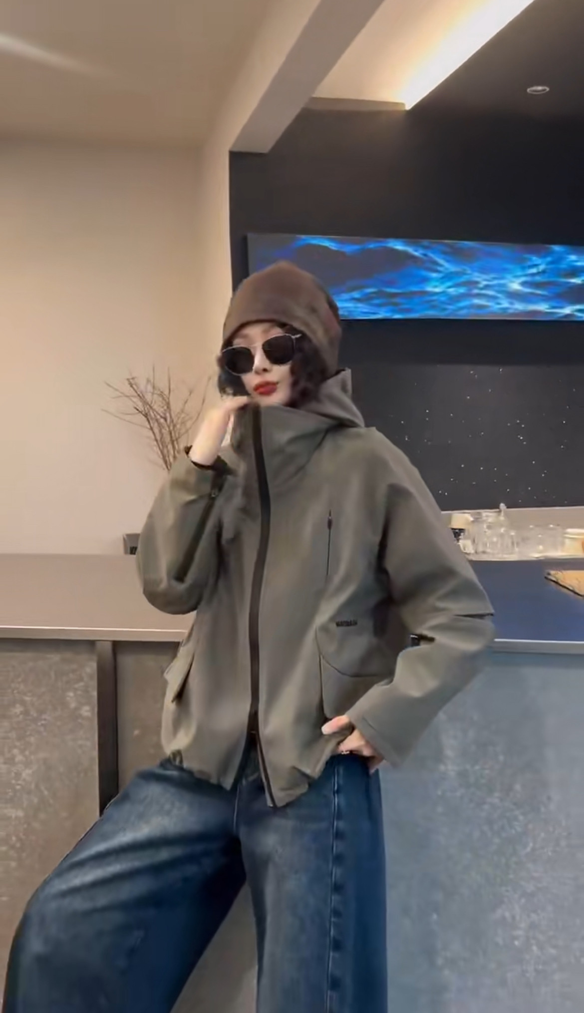 - 蓝色风衣女