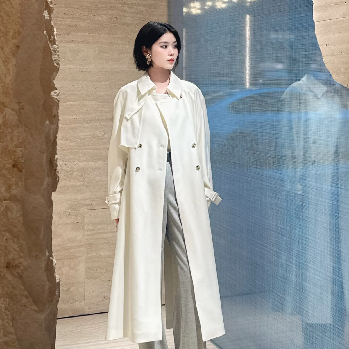 "飒爽女人"2025春英伦风长款双色风衣高级感通勤外套女显瘦气质