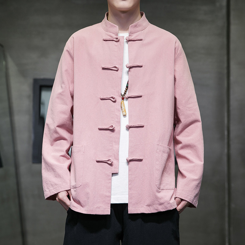 中国风男装长袖唐装青年上衣外套棉麻衬衣汉服中老年春秋冬季古装