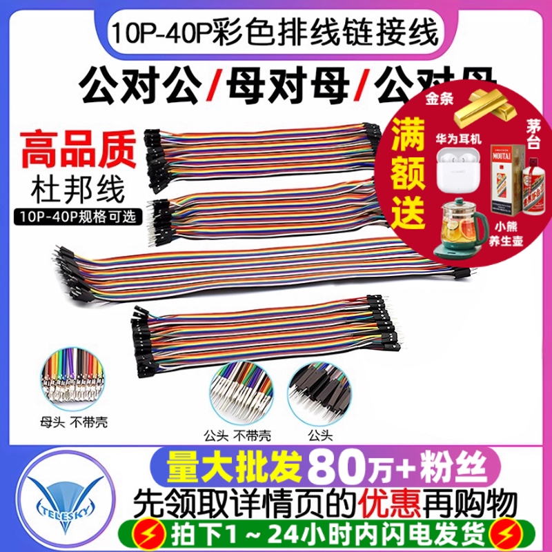 40P杜邦线彩色排线连接线10/21/30/40cm母对母 公对母 公对公铜线