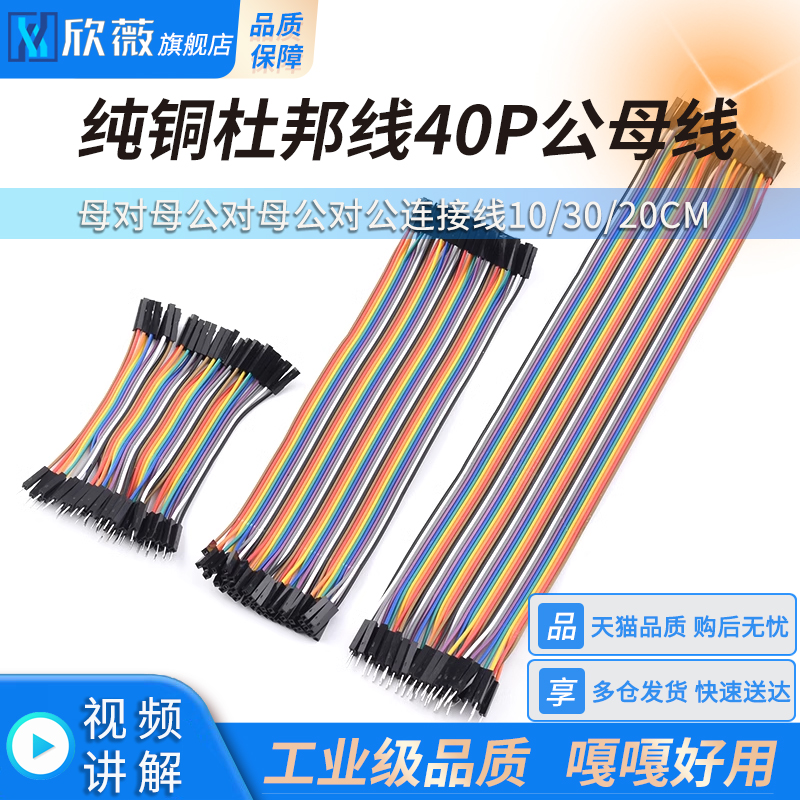 40P杜邦线全铜芯 彩色排线连接线10/21/30/40cm 母对母 公对