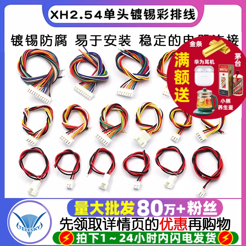 XH2.54端子线 2.54MM电子线单头镀锡彩排线连接线2位/3/4/5/6/10P