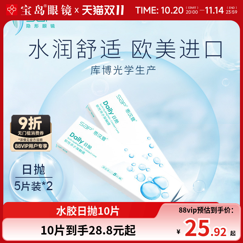宝岛眼镜SAP隐形近视眼镜日抛30片进口透明片10片官方旗舰店正品
