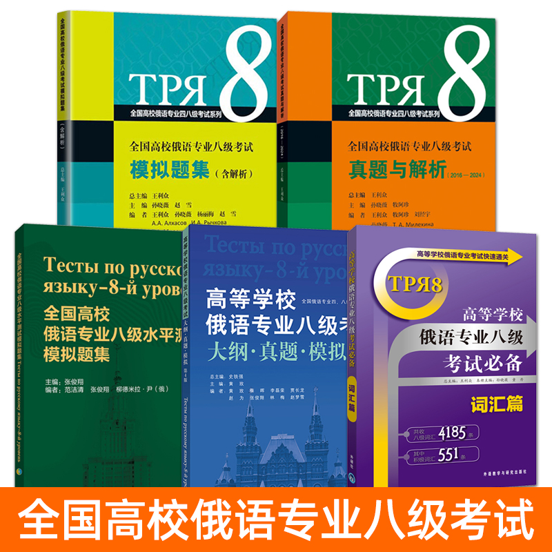 俄语专业八级考试 大纲真题模拟+俄语专八水平测试模拟题集+俄语专业八级考试词汇篇+真题与解析2016-2024 俄语专八考试 单词 书