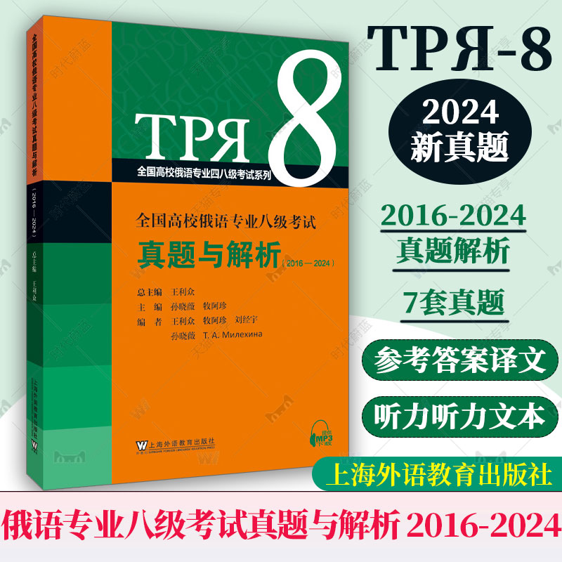 2024-2016俄语专八真题|俄语专业八级考试真题与解析(附音频)大学俄语专业8级考试听力翻译专八词汇专8语法真题模拟试题强化训练