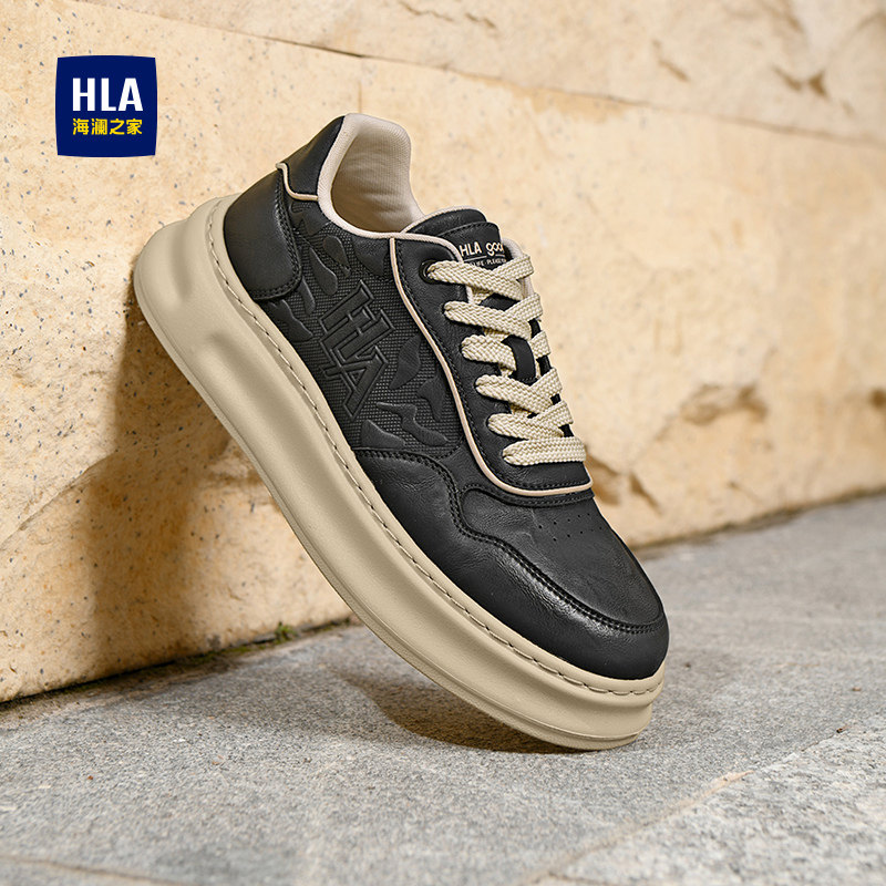 海澜之家黑色圆头休闲板鞋男款2025秋冬新款厚底耐磨潮流雕花男鞋