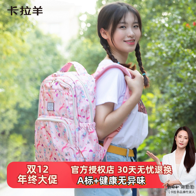 卡拉羊双肩包女高中生书包学院风休闲旅行包韩版校园学生书包防水