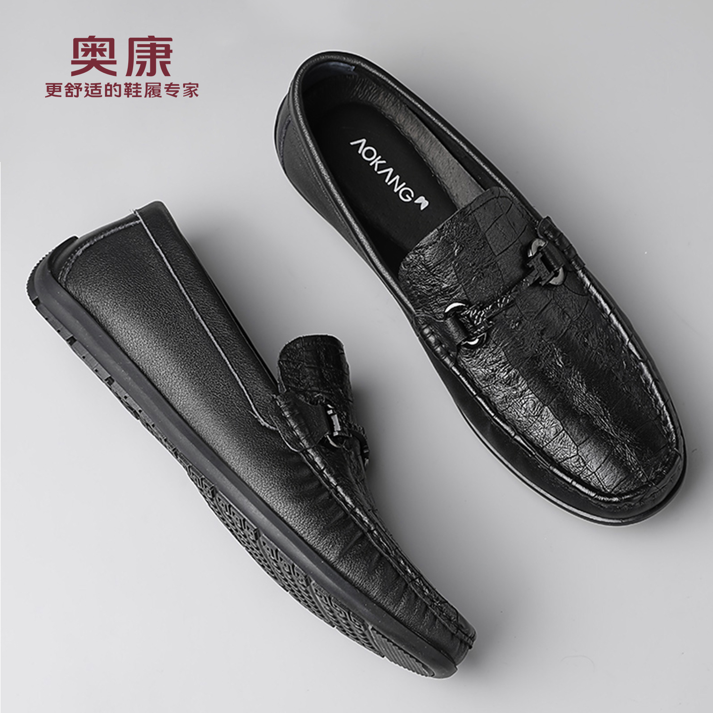 奥康男鞋官方旗舰店春秋款商务休闲皮鞋男真皮舒适百搭套脚爸爸鞋