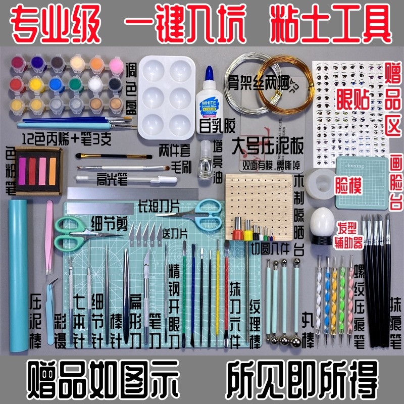 超轻黏土工具包套装全套手办制作雕刻人物花瓣丸棒花瓣垫板带收纳