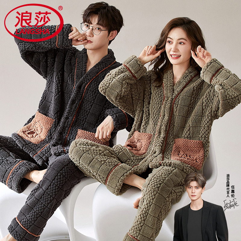 浪莎情侣睡衣秋冬季珊瑚绒男士女款加厚加绒冬天法兰绒家居服套装