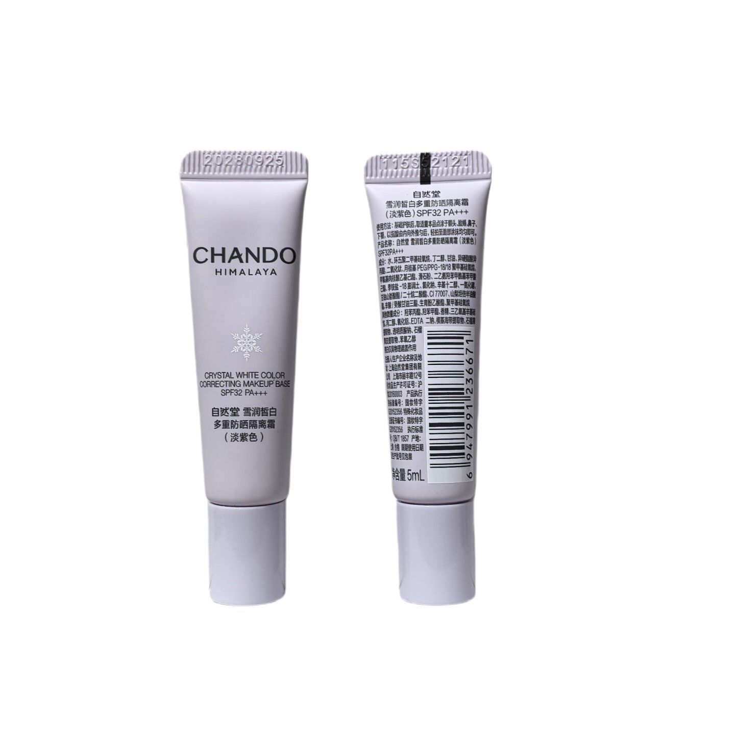 自然堂雪润皙白多重防晒隔离霜淡紫色淡绿色5ml装 修颜遮瑕保湿