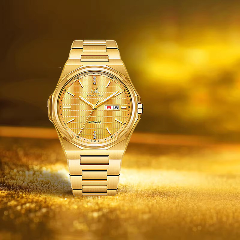 上海牌2025新款男士全自动机械腕表夜光日历防水精钢表带商务送礼
