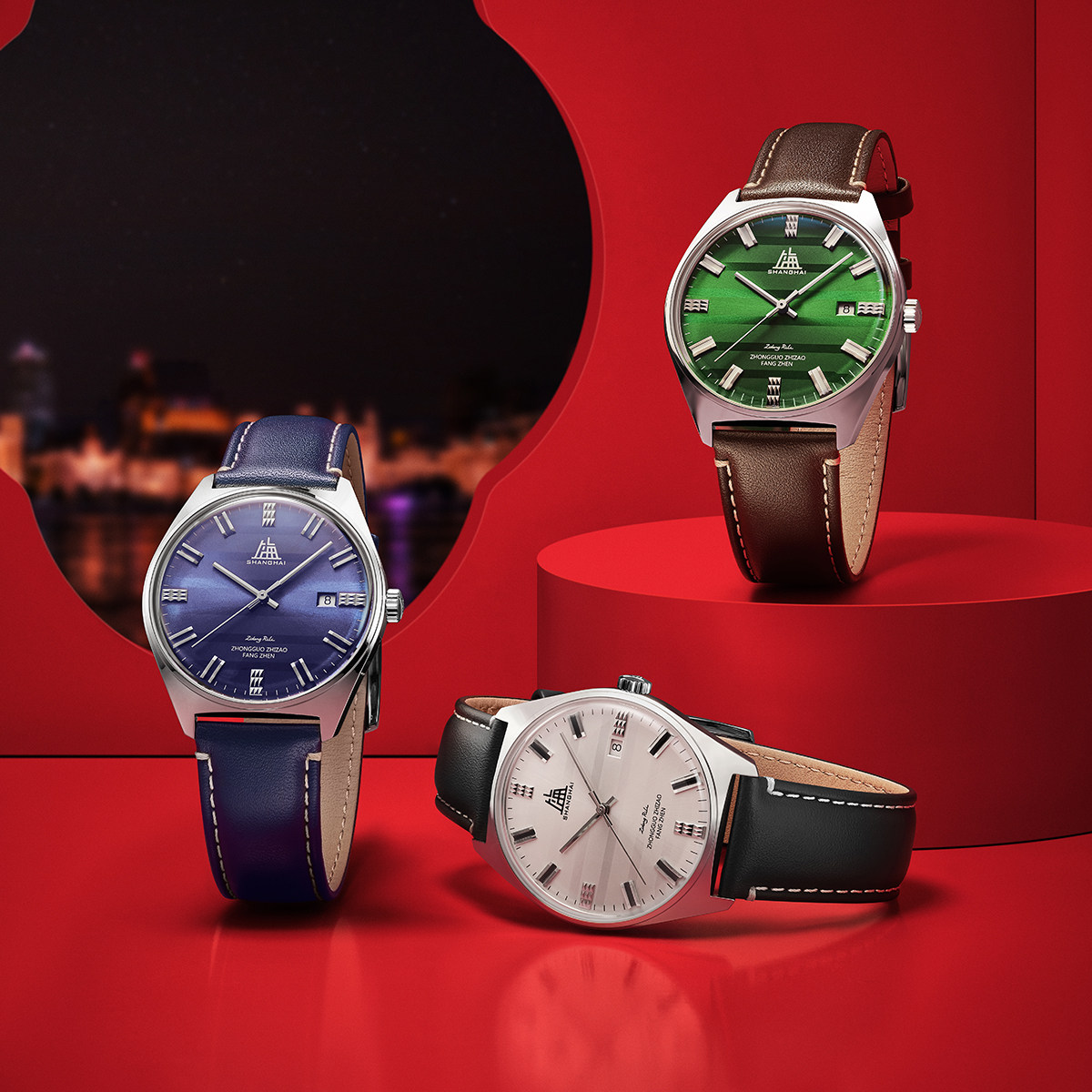 【新品】上海手表男款The Bund系列城市旅行时尚计时码表机械腕表