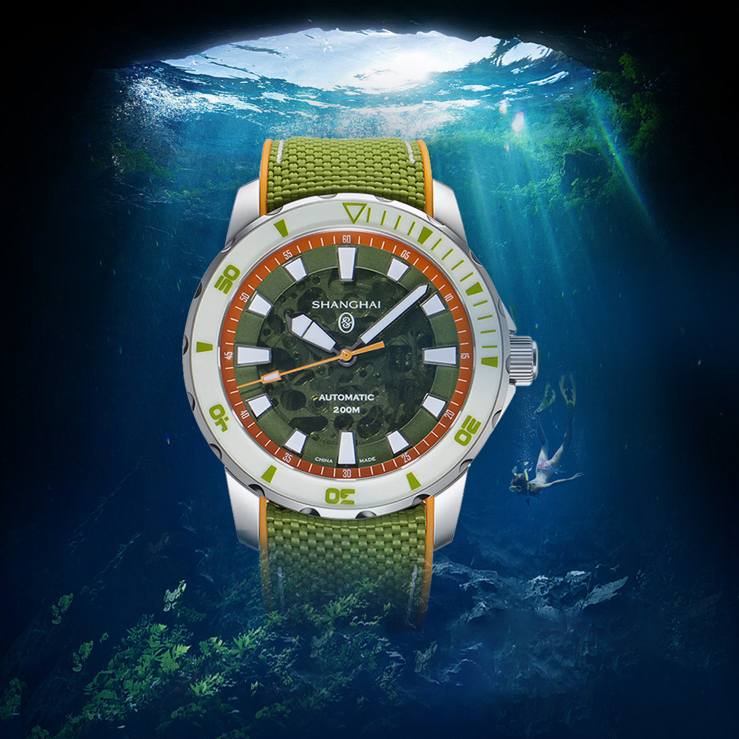 上海手表SH幻彩男女同款潜水表防水夜光运动机械腕表官方旗舰店