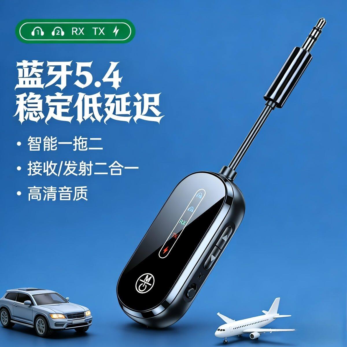 蓝牙5.4接收发射器aux车载音频适配器电脑电视转音响耳机无线连接