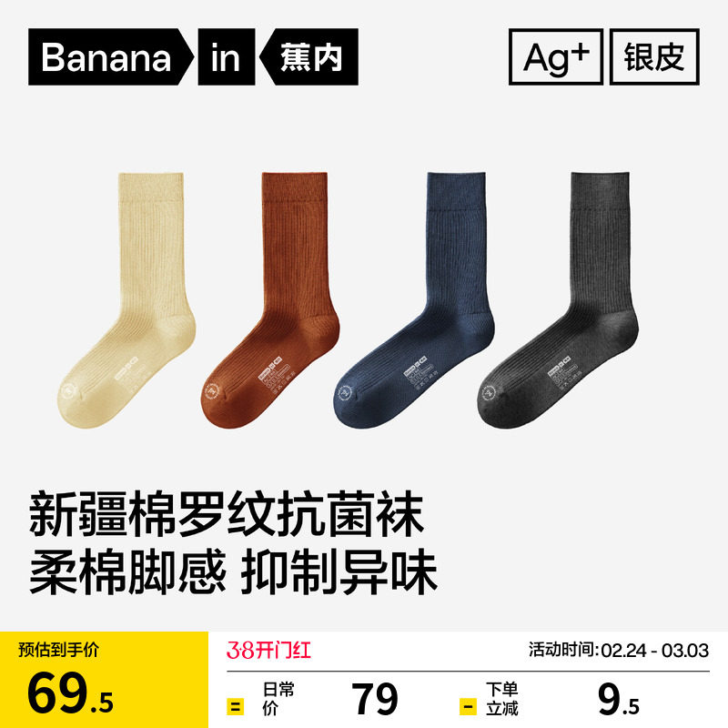 7A抗菌|蕉内银皮511S男女袜子运动防臭吸汗加厚罗纹秋冬长袜棉袜