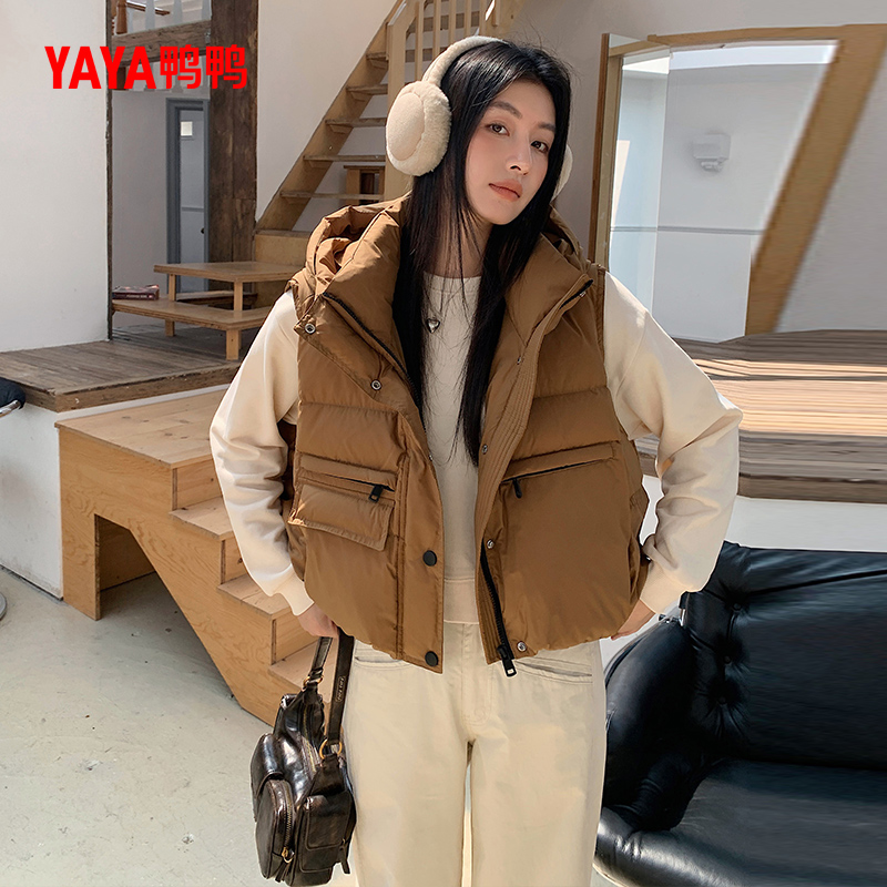 鸭鸭羽绒马甲女短款连帽2024秋冬新款韩版宽松轻薄羽绒服马夹外穿