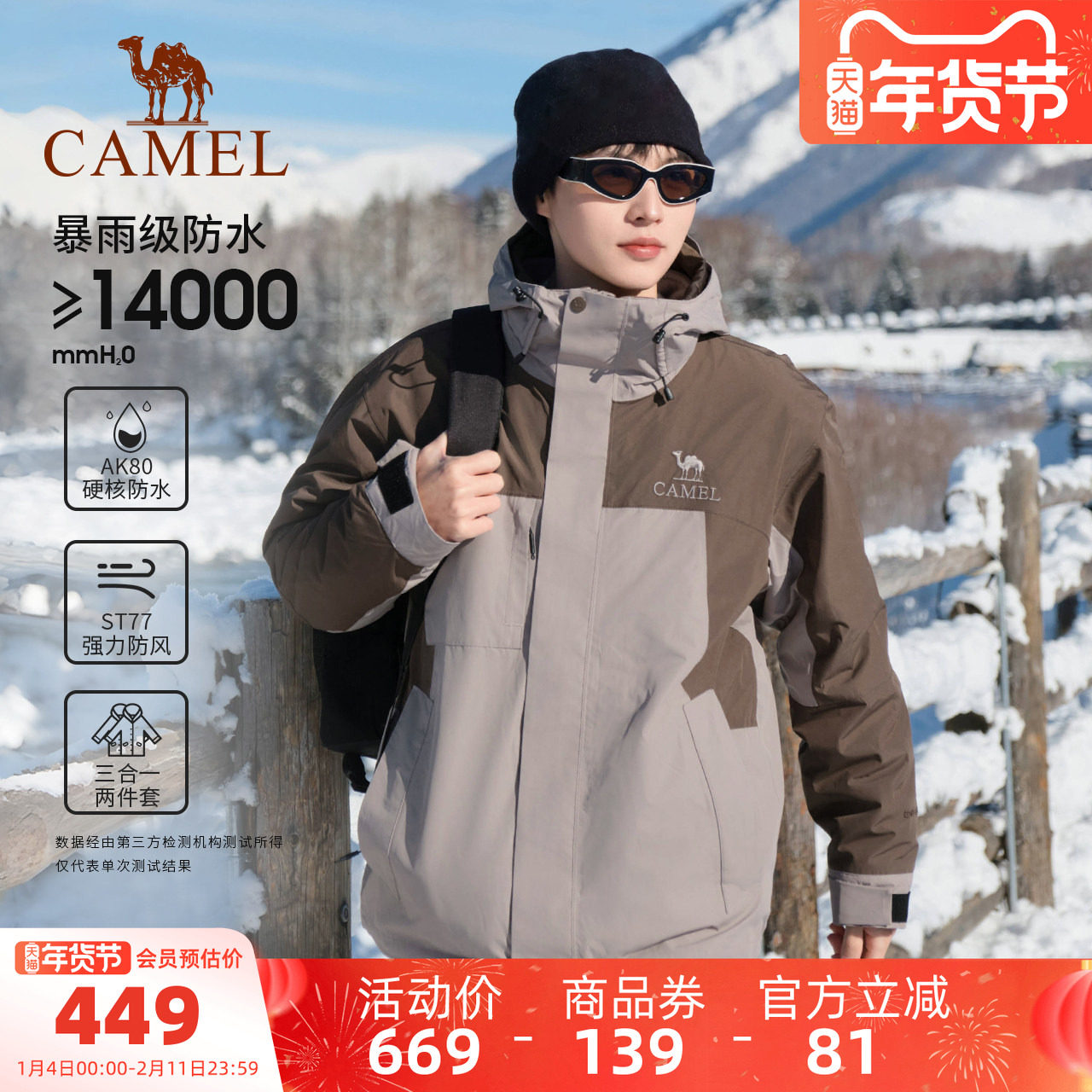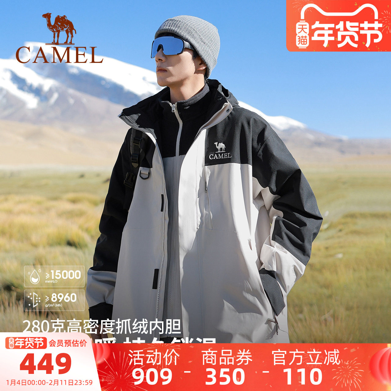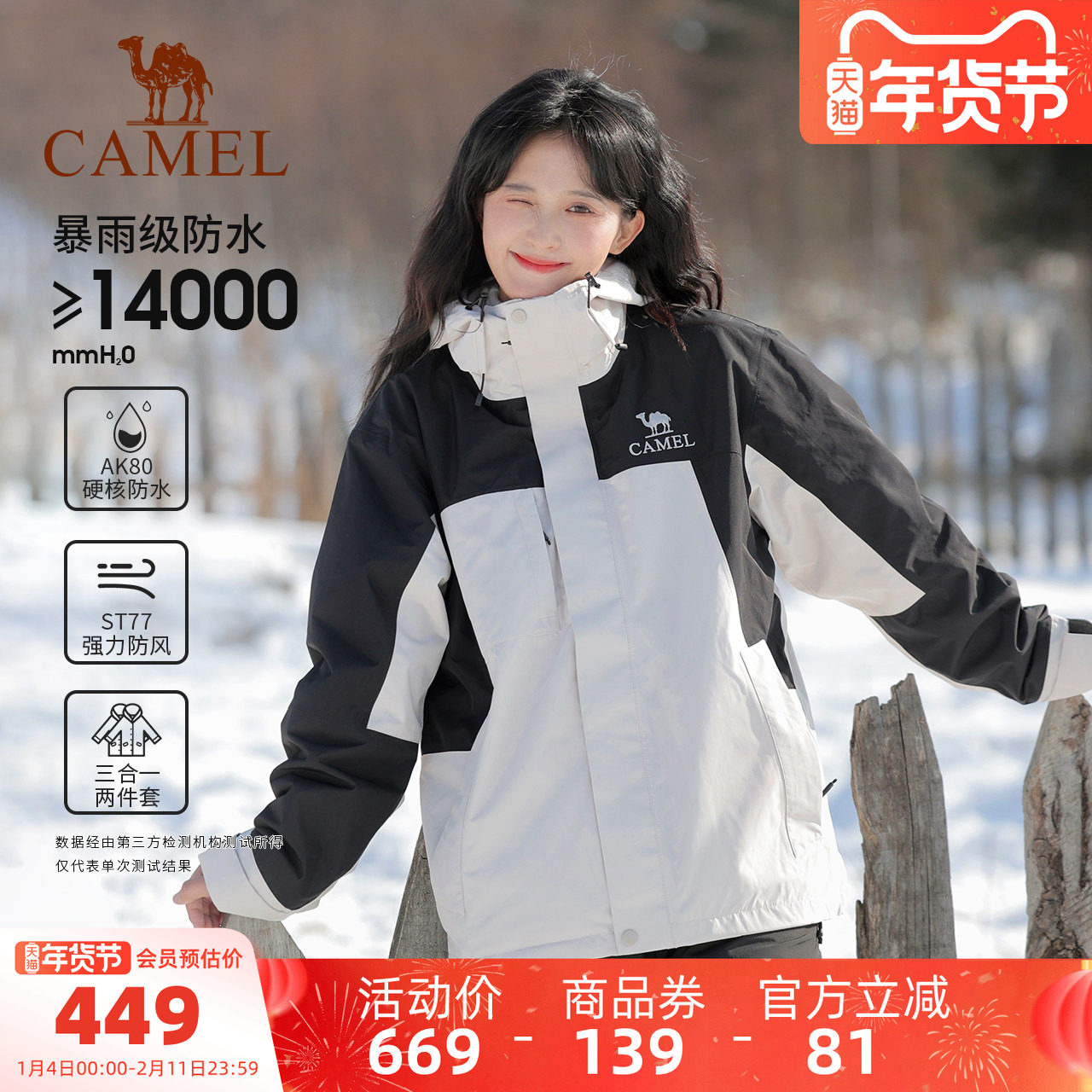 【香菇超级年货节】骆驼3514系列冲锋衣男女款三合一两件套户外