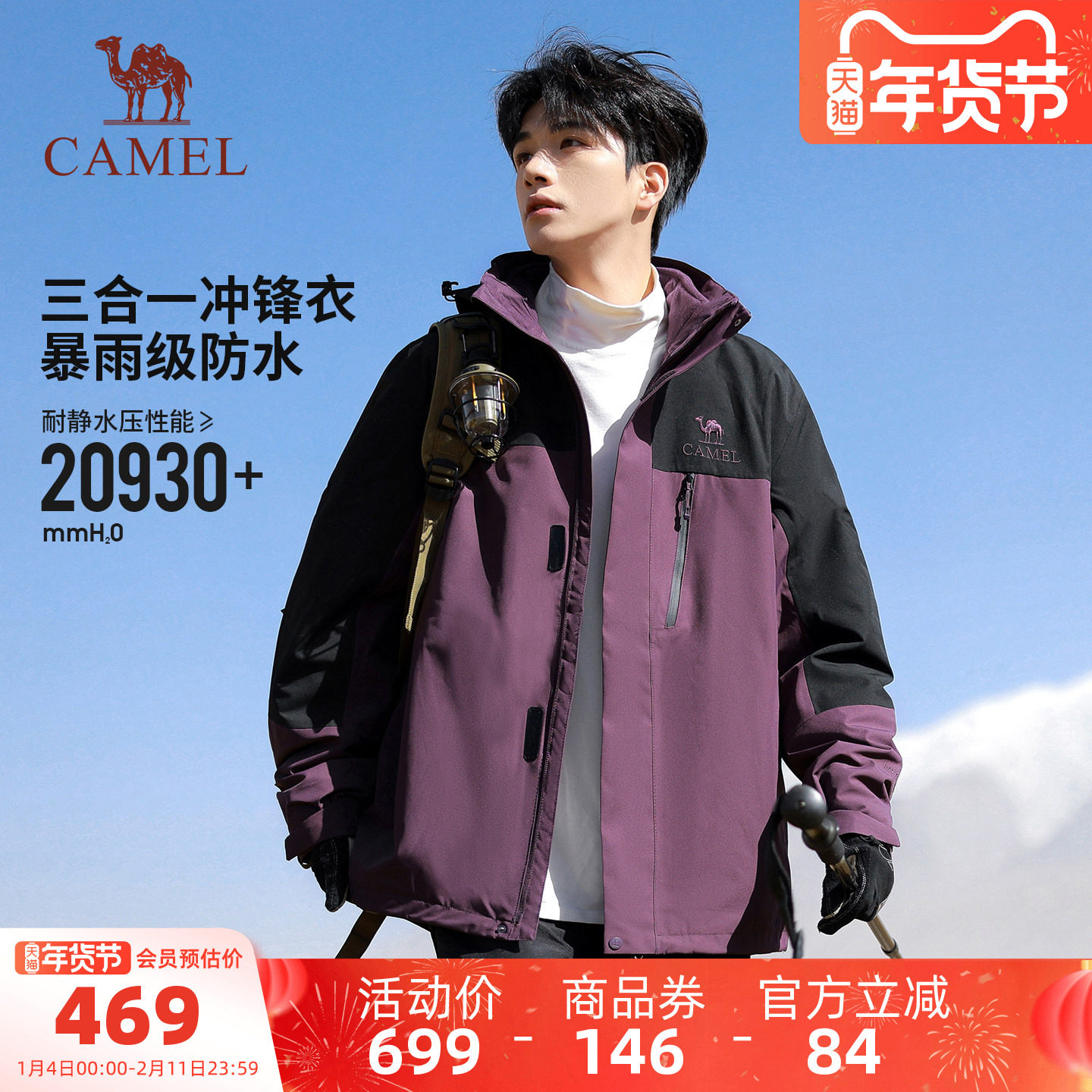 - 骆驼冲锋衣三合一男