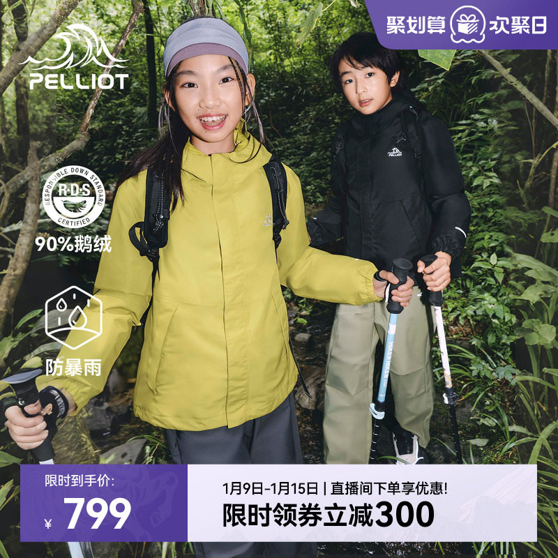伯希和户外冲锋衣两件套儿童90大朵鹅绒羽绒服防风保暖运动外套