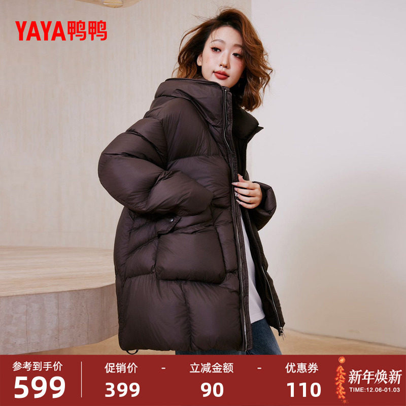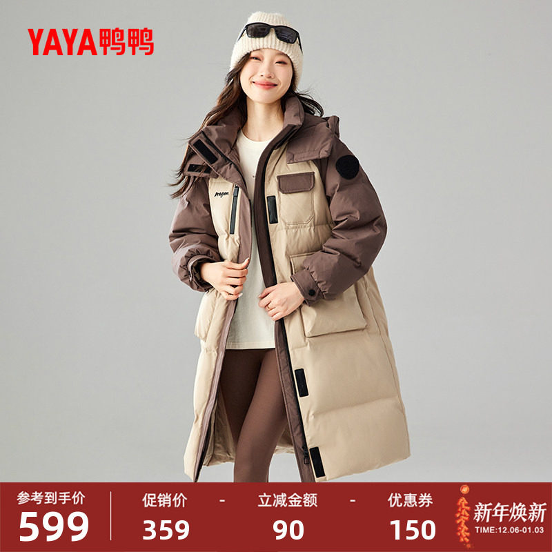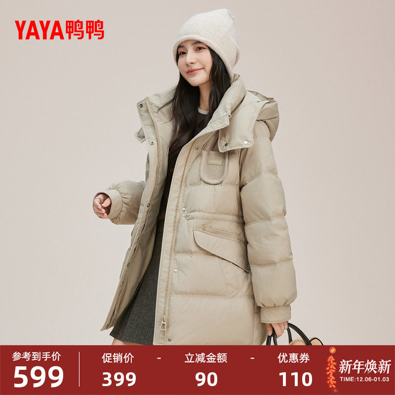 YAYA/鸭鸭2025冬新款时尚休闲保暖加厚百搭女士中长款羽绒服外套