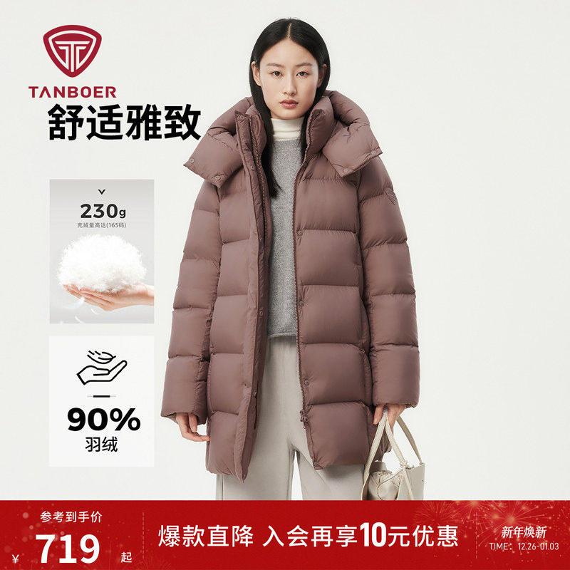 坦博尔冬季加厚鸭绒羽绒服中长款女装舒适休闲百搭保暖外套妈妈款