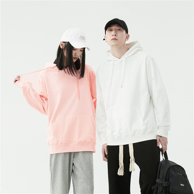 721加绒连帽套头卫衣男女L73927光板纯白色情侣中性宽松长袖外套